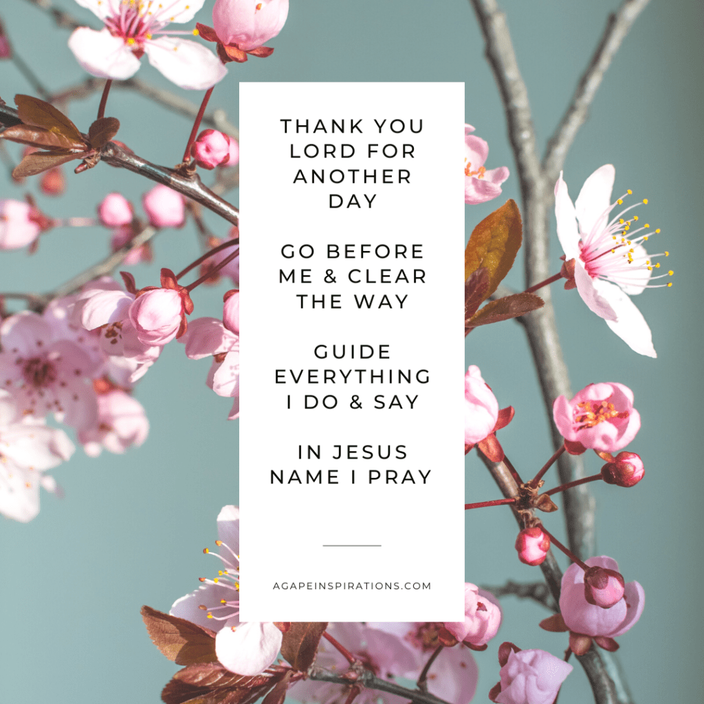 ← In His Presence God please go before us today. Clear the way ahead of us and fight our battles for us. If we have a doctor’s appointment, guide the medical staff. If we are going to work, touch the lives of our co-workers and the heart of our employer. We stand on your promise that you will not leave us or forsake us. With you we can face and overcome anything that comes our way. You have our back and our front. Your love and protection encompasses us. Thank you God for this day. →