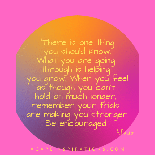 It may not feel like it now, but in spite of all that you are going through in your life God has not forgotten you. Try to keep the faith. Yes, we are human and will certainly have our share of hurt, pain and diffiult times, but in these moments God will rise up within us, gird us for battle and lead us to total victory. He will provide unexplainable peace and fortify us. He will give you supernatural power and strength while you are in the midst of your situation. Have confidence that in the end you come out stronger. Don’t give up now.