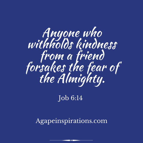 During the most challenging time in Job’s life he was greatly disappointed in those whom he considered to be his closest friends. When he looked for compassion, encouragement and comfort he was met with everything but. Job stood up to them and let them know how they had failed at being true friends. Often in life we will be let down by individuals whom we expect to be there for us. There can be many reasons why people miss the mark when we need them most. Maybe, they are going through things of their own or because of their lack of understanding as to what God is doing in your life they are unable to effectively be a supportive friend. Sometimes God removes individuals from our life on purpose, so we can learn to rely on Him instead of our closest allies. When God reveals the character of those around you, believe it. Hold no grudges because we all miss the mark sometimes in life. Don’t become bitter, for that is not the will of God. Forgive and keep living. Most importantly be kind and don’t ever stop allowing God to love others through you. Be the type of friend that you desire. A.Daubon