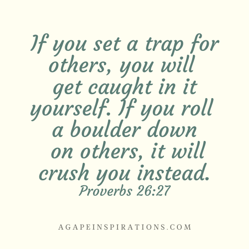 In life it is important to do what is right. It is never fruitful or productive to scheme against others. Nor do we have to be concerned when others scheme against us. God’s word is established and firm. What was designed or intended to hurt you, will not prosper. The set up will not set you back, it will only help you step up to a higher level of faith. Live your life in a way that is encouraging to all who come across your path. Never seek to devise plans that are not in the best interest of others. Don’t participate in wicked ploys. Treat others the way you would want to be treated. Don’t be concerned when people plot against you and try to bring you down. While we never wish bad or harm on anyone, God will not be mocked. We all reap what we sow. So, do the right thing.