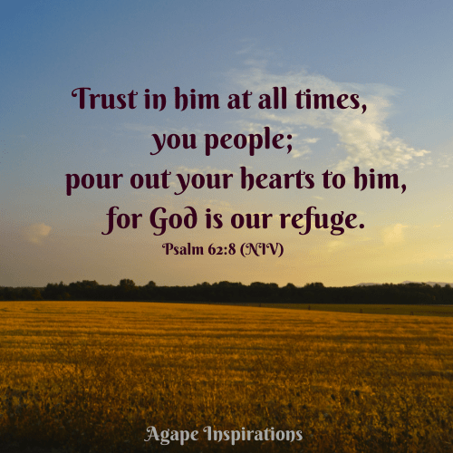 During the vicissitudes of life, maintain your hope and trust in God. He is with you during the ups and downs of your life. He is your shelter from all danger, harm and hardship. He is your keeper and deliverer. God is your mighty fortress. You can run to Him and find your security. Give Him your petitions and abide in His protection. He will cover you and keep you. As we meditate on the verse of the week, consider all that is troubling you today and give it all to God. He will not leave you defenseless. He will go before you and fight your battles. He will give you security and safety. You can rely on God to bring you through all your troubles. Do not fear, trust God to move on your behalf. Trust that He hears your prayers and is working it out for you. Cast your cares before God and embrace His rest. Let’s go and grow together. ADaubon