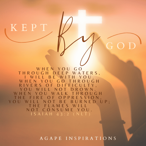 When you go through deep waters, I will be with you. When you go through rivers of difficulty, you will not drown. When you walk through the fire of oppression, you will not be burned up; the flames will not consume you. Isaiah 43:2 (NLT) There is peace in knowing that God will bring us through all that we go through. There is absolutely nothing that He cannot do. When it feels like we’re drowning, He safely brings us back to shore. Everything we thought we lost He faithfully restores. When it gets too hot to handle, He surrounds us with His protection. Praise God for the insulation of His love and affection. Hard times won’t overtake us, because in Him we overcome them all. While trials and circumstances try to beat us down, He will help us to stand tall. When difficult times arise have faith that He will not let us sink into despair. With confidence we can navigate the vicissitudes of life knowing that we are in His loving care. He will not allow us to be overtaken or drown into the depths of weariness. We will survive to tell the testimony of His goodness. Let’s go and grow together. ADaubon