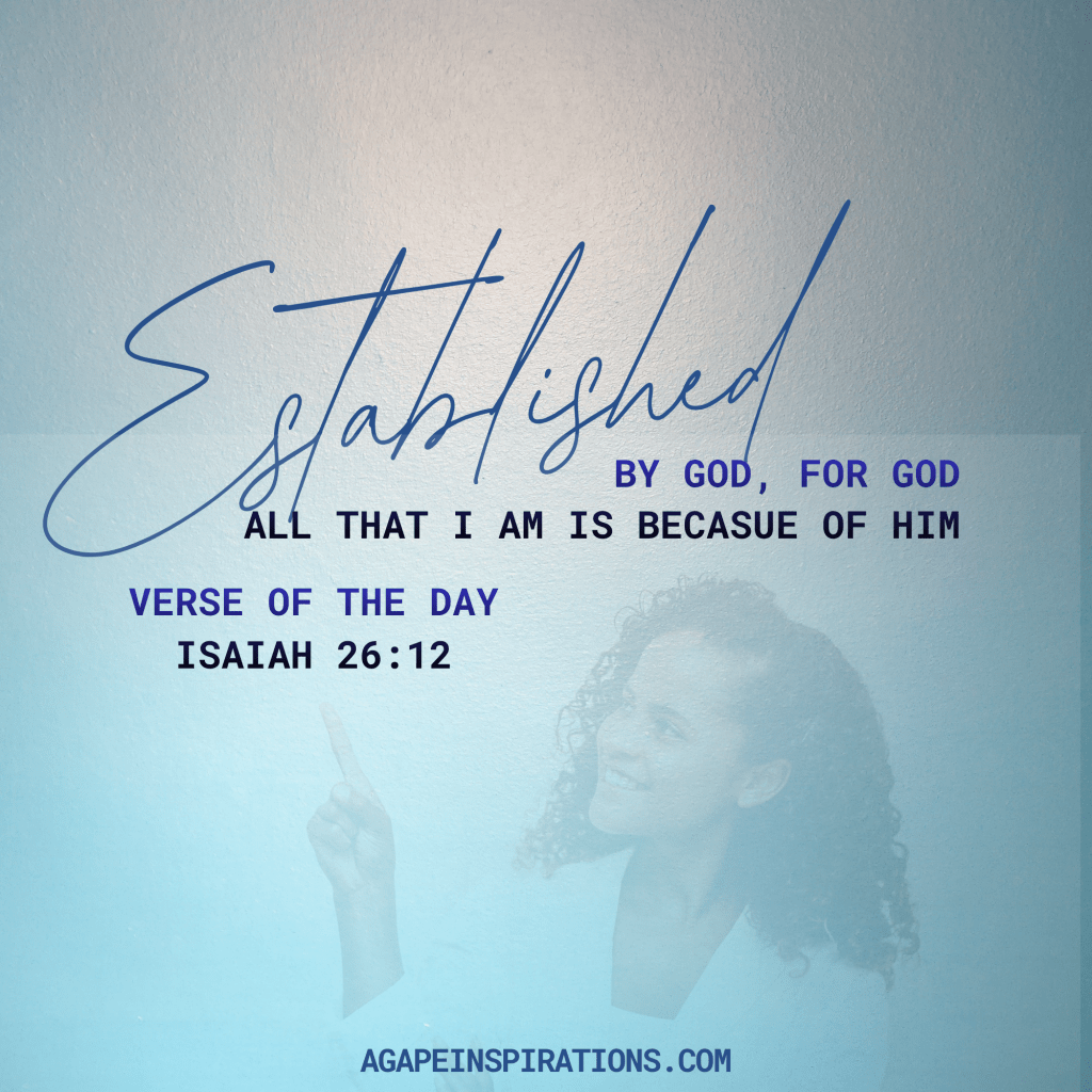 LORD, you establish peace for us; all that we have accomplished you have done for us. Isaiah 26:12 (NIV) True success is being established by God – not the standards of the world. God builds us and places us on the path that He has designed for our life. Find peace on the path He has set before you, and trust that God is leading you directly where you need be to fulfill the call on your life. All that we are and will ever be is a direct result of God’s hand on our life. Even when we make mistakes God recalculates our steps. Every closed door and rejection were part of God’s protection and redirection. Trust the plans of God and surrender to the process. Let us surrender every endeavor and plan to the Lord and seek His wisdom and guidance. Let God lead the way. He will establish you and you will accomplish all that He has prewritten and ordained for you life Let’s go and grow together. ADaubon