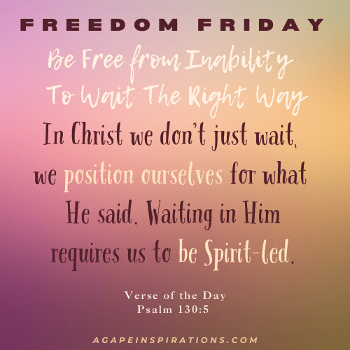 I wait [patiently] for the Lord, my soul [expectantly] waits, And in His word do I hope. Psalm 130:5 (Amp.) Pause, pray and be patient. God knows all that you need and desire. He hears your concerns and knows all that you’re going through. When you think He’s not answering, He’s preparing you for the breakthrough. Position yourself in great expectation, while stretching your faith beyond all the borders you’ve imagined. Believe and trust with your whole heart. Command your inner voice to rest and reset to the promises of God. The word He has spoken over your life will not come back void. It will be fulfilled and every promise will manifest in due season. Hang in there, hold onto God’s hand and follow His lead. Press Forward In Christ! ADaubon