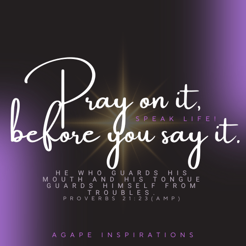 He who guards his mouth and his tongue guards himself from troubles. Prov. 21:23 (Amp.) Our mouth sets the tone for our interactions with others and the content in our heart is the driving force. It is better to think before we speak, rather than attempt to retract the things said in haste. Pray daily that your words will be sifted through the love of God and make a conscious effort to let what you say be a source of encouragement. Seek to address what rages within that causes you to be reckless with your words. When your words produce light, love and life you will avoid unnecessary strife. Think before you speak, pursue peace and exhibit patience. Let’s go and grow together. ADaubon