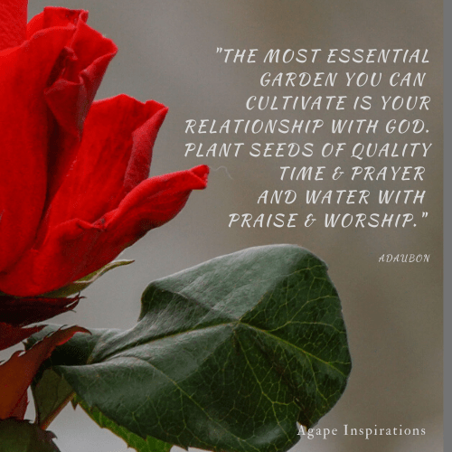 Remain in me, and I will remain in you. For a branch cannot produce fruit if it is severed from the vine, and you cannot be fruitful unless you remain in me. John 15:4 (NLT) In life, you will form many types of relationships, some for a season and others for a lifetime. Your bond with God is the most important connection you will ever have. The time is now to deepen your personal relationship with God. Increase your quality time with Him, void of distractions. Seek Him through prayer, reading His word and soaking in His presence. Mediate on the scriptures, let them take root in your heart and guide your path. Maintain a posture of gratitude through praise and worship. Plant seeds of faith that nurture your spirit and reap the greatest return of your life. Don’t stray, stay connected. ADaubon